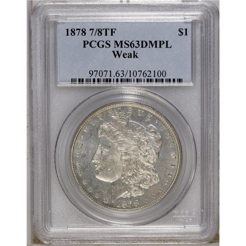 1878 7/8TF S$1 Weak MS63 Deep Mirror Prooflike PCGS. L