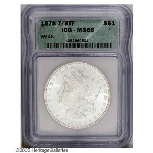 1878 7/8TF S$1 Weak MS65 ICG. This nearly pure white G 1878 7/8TF[S$1] Weak MS65 ICG.