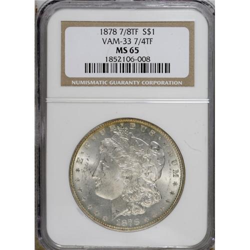 1878 7/8TF S$1 Weak MS65 NGC. VAM-33. This 7/4 Tailfea