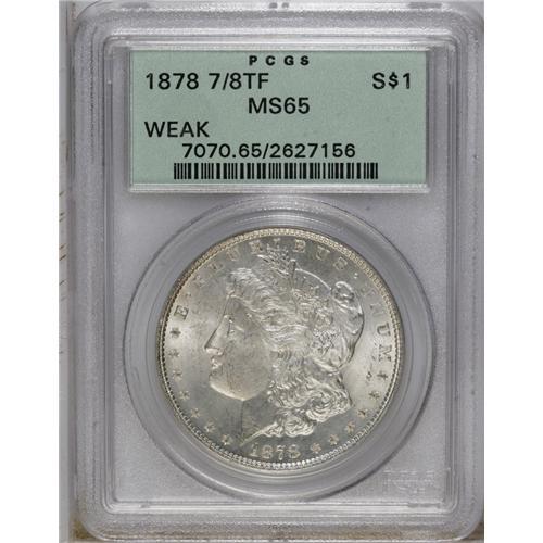 1878 7/8TF S$1 Weak MS65 PCGS. Brilliant-white and ful