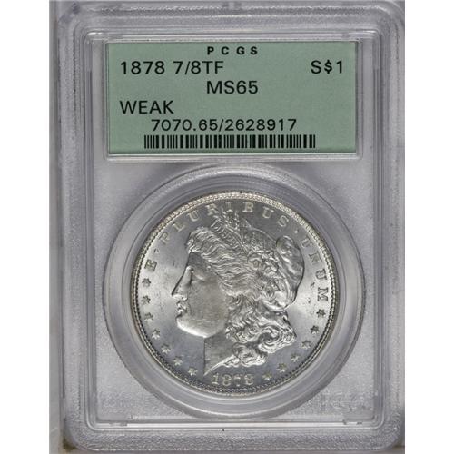 1878 7/8TF S$1 Weak MS65 PCGS. On the reverse, a thin