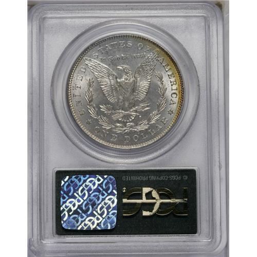 <B>1878 7/8TF<img border='0' src='http://www.heritagecoins.com/images/star.gif' width=10 height=10>$1> Weak MS65 PCGS.</B></I> VAM-32. On the reverse, a thin crescent of deep orange-gold toning along the right rim gives this coin its only color. Well struck and satiny, this Gem is housed in a green label holder.<BR><I>From The Chicago-Ark Collection.</B></I>