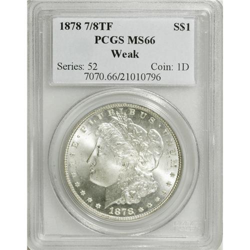 1878 7/8TF S$1 Weak MS66 PCGS. VAM-33. In reality, the