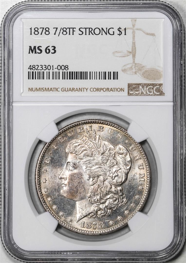 One 1878 7/8TF Strong $1 Morgan Silver Dollar Coin NGC MS63. NGC Certified.