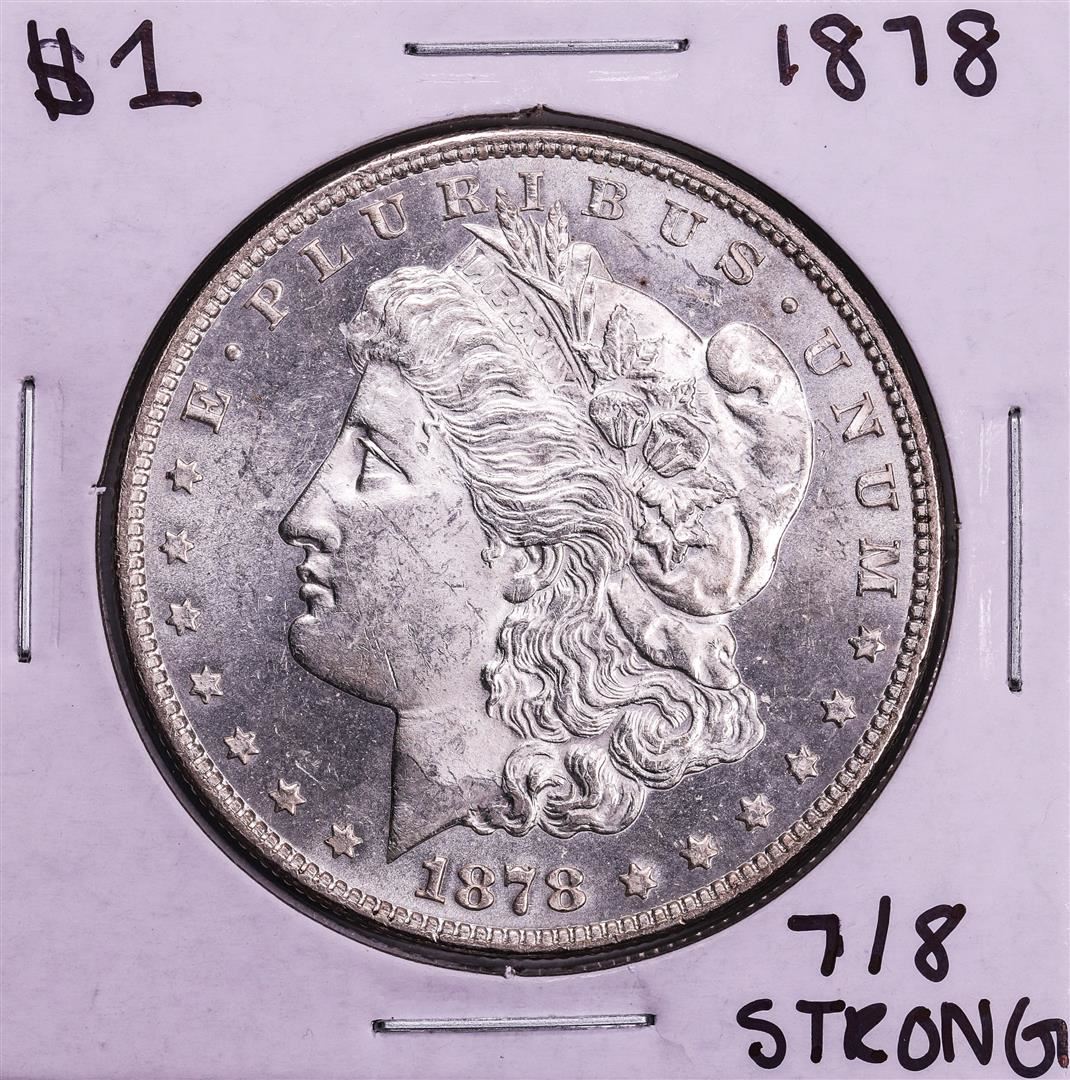 One 1878 7/8TF Strong $1 Morgan Silver Dollar Coin.