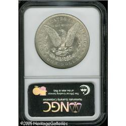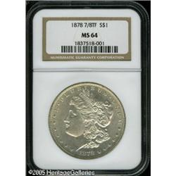 <B>1878 7/8TF<img border='0' src='http://www.heritagecoins.com/images/star.gif' width=10 height=10>$1 Strong MS64 NGC.</B></I> Satiny and lustrous with brilliant silver surfaces. A few faint lines are visible on the obverse. Lot:9889
