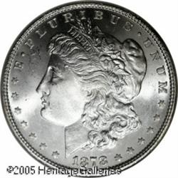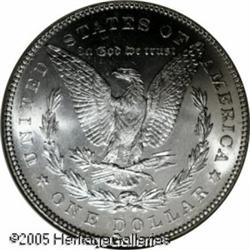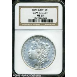 <B>1878 7/8TF<img border='0' src='http://www.heritagecoins.com/images/star.gif' width=10 height=10>$1 Strong MS65 NGC.</B></I> VAM-33. Portions of four feathers can be detected under the prominent tailfeathers. This snowy-white representative is especially smooth for the issue and displays a shimmering cartwheel sheen. Lot:9890