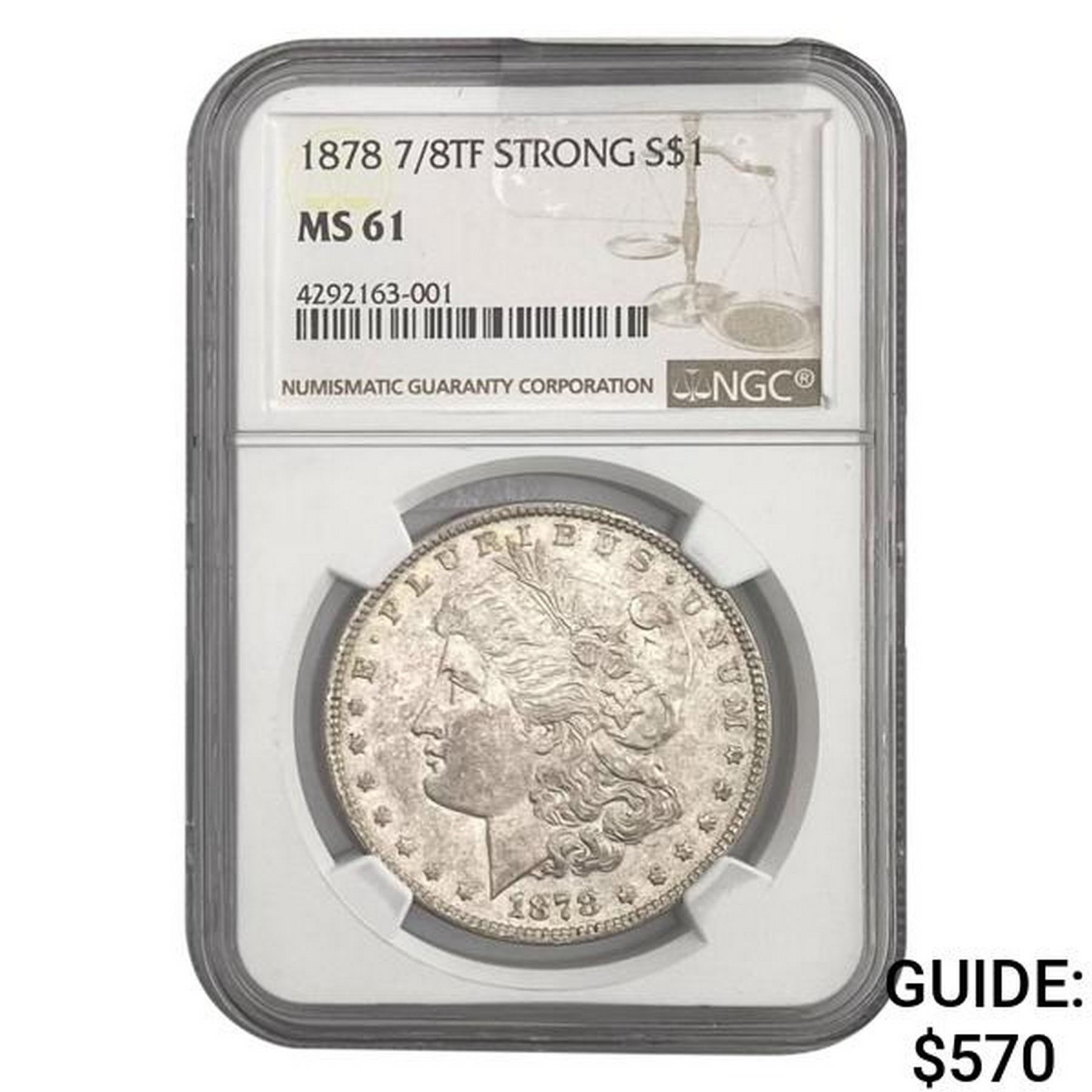 1878 7/8TF Strong Morgan Dollar NGC MS61