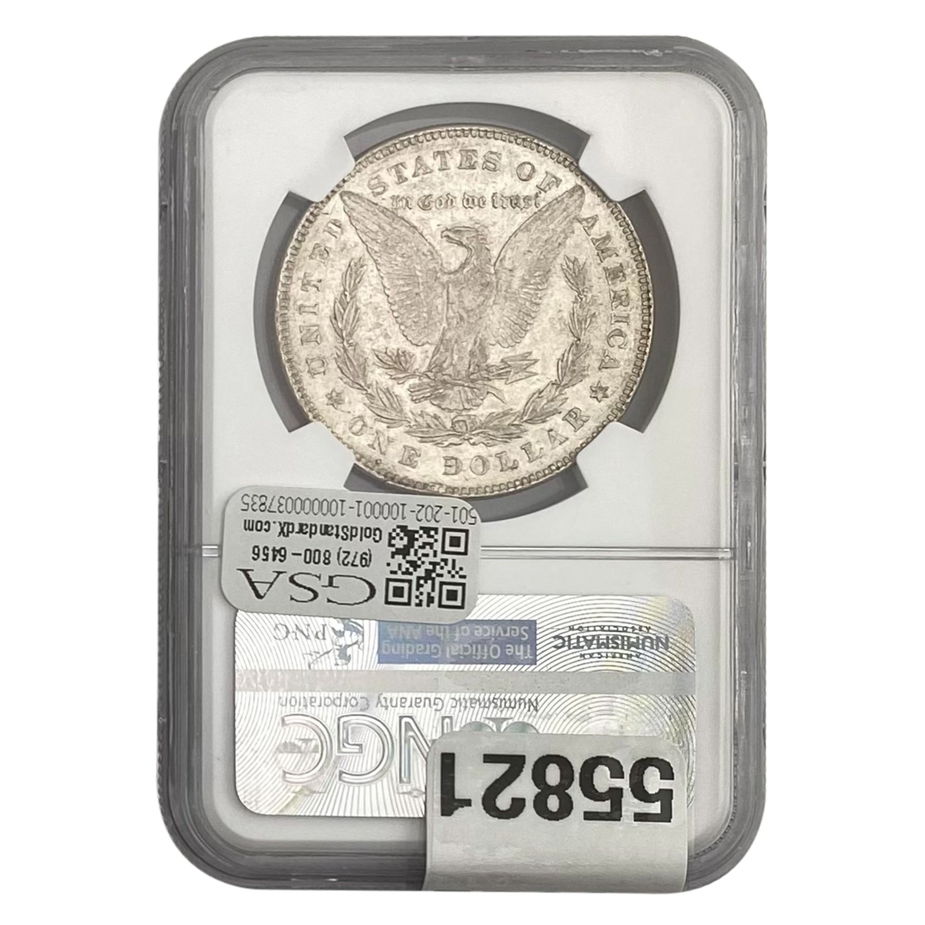 e. Coins sold referencing a third-party grading service are sold “AS IS” without any express or implied warranty, except for a guarantee by GSA that they are genuine. Removal or alteration of the holder, voids all of Bidder’s claims concerning that Product. Certain warranties may be available from the grading services and Bidders are referred to them for further details: Numismatic Guaranty Corporation (NGC), PO Box 4776, Sarasota, FL 34230, www.ngccoin.com/services/writtenguarantee.asp; Professional Coin Grading Services (PCGS), PO Box 9458, Newport Beach, CA 92658, www.pcgs.com/guarantee.html; ANACS, 6555 S. Kenton St., Ste. 303, Englewood, CO 80111; and Independent Coin Grading Co. (ICG), 7901 East Bellview, Ave., Suite 50, Englewood, CO 80111.