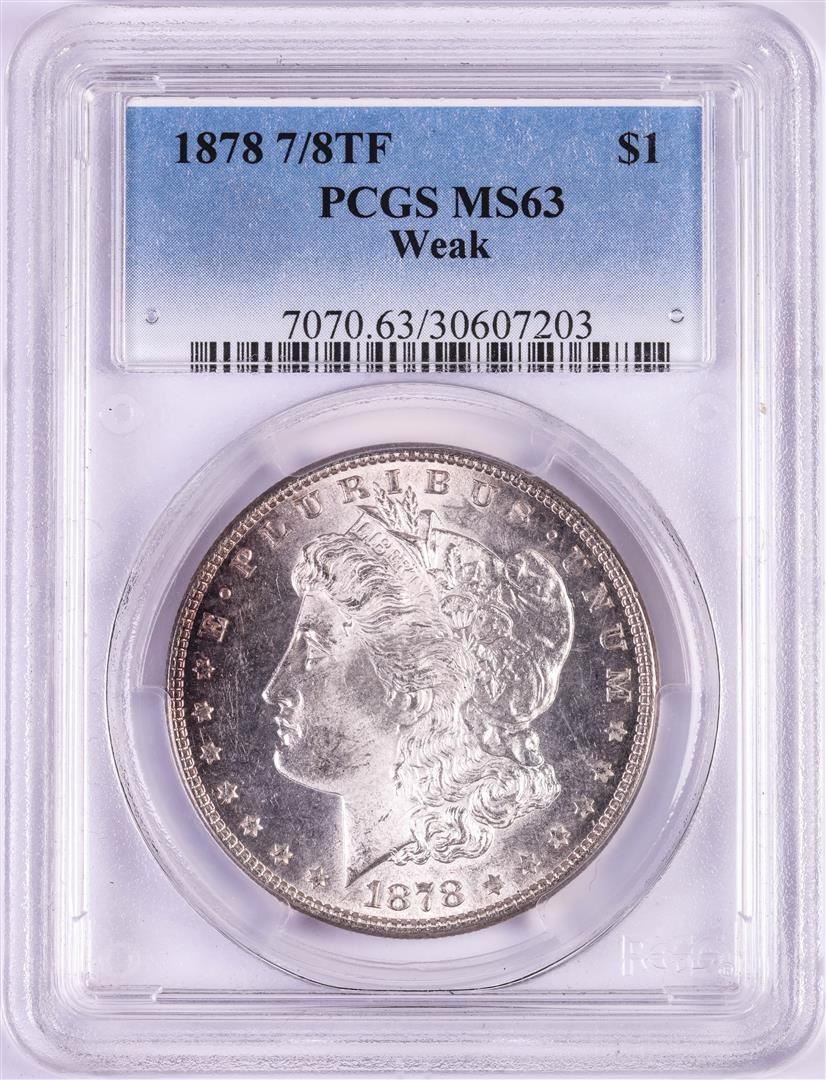 One 1878 7/8TF Weak $1 Morgan Silver Dollar Coin PCGS MS63. PCGS Graded.