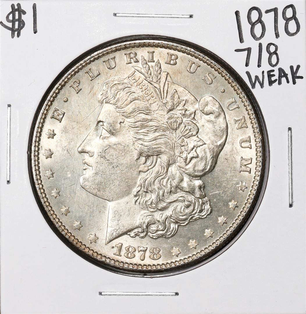 One 1878 7/8TF Weak $1 Morgan Silver Dollar Coin.