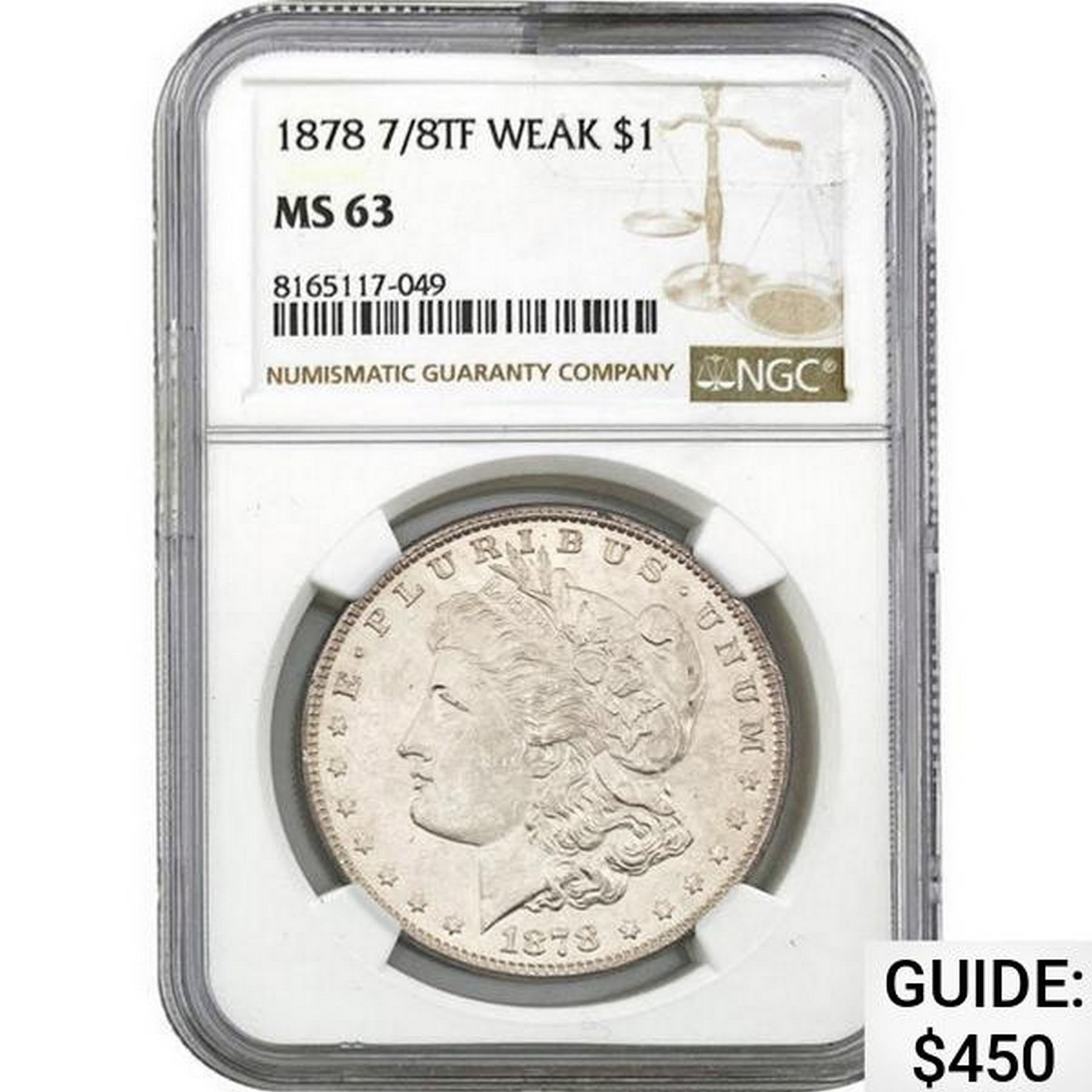 1878 7/8TF Weak Morgan Silver Dollar NGC MS63
