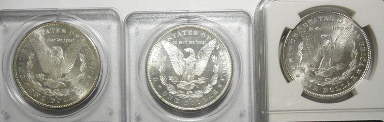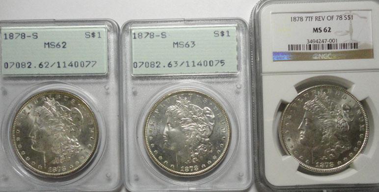 1878 7F NGC62 and 2 1878S OGH RATTLERS PCGS62 and 63