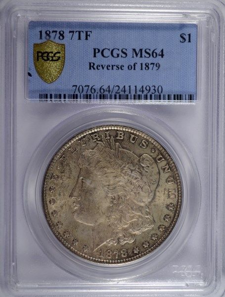 1878 7F REVERSE OF 1879, PCGS MS-64 RARE!! PRETTY COLORS, LOOKS MS-65
