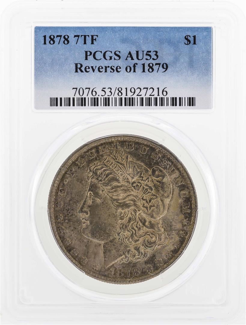 One 1878 7TF $1 Morgan Silver Dollar Coin Reverse 1879 PCGS AU53. PCGS Graded.