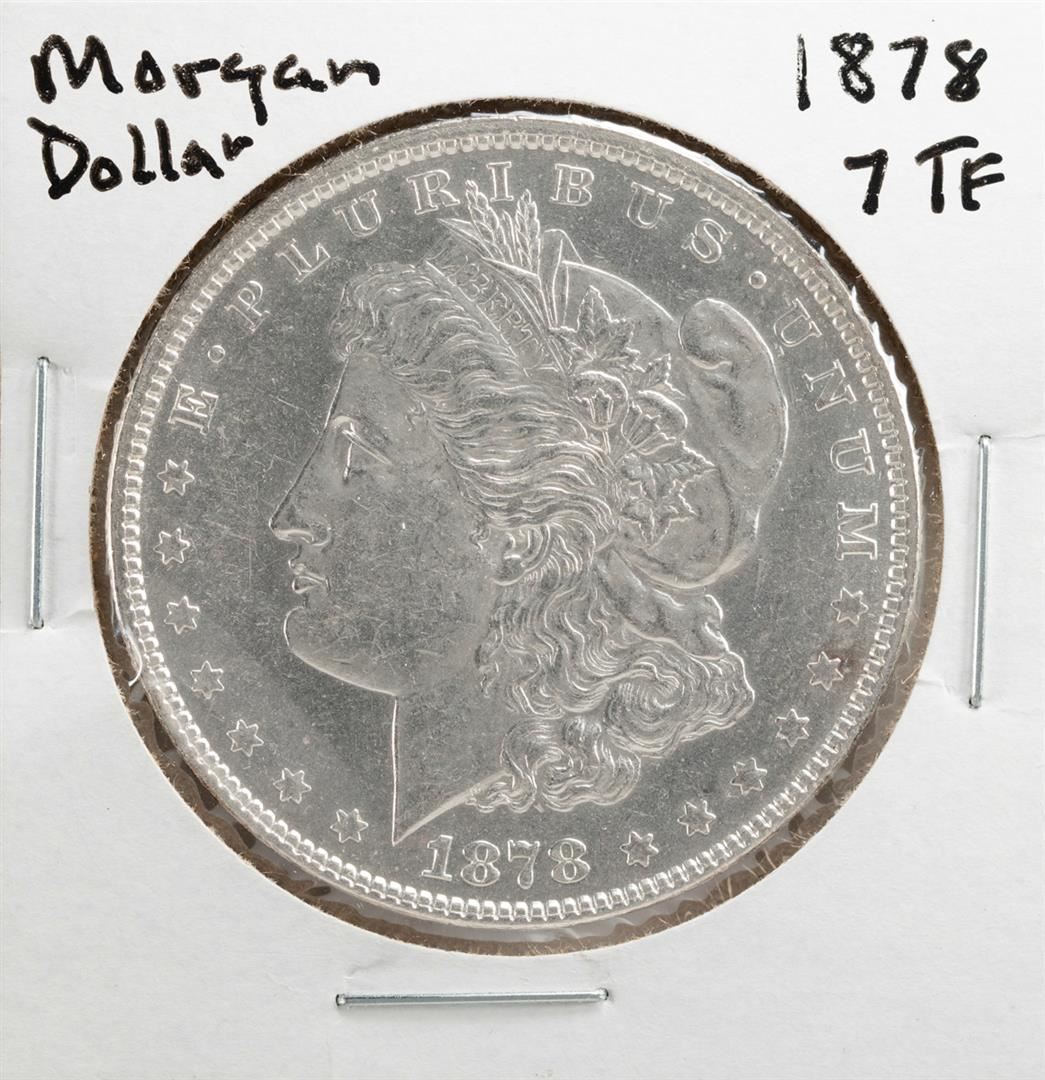 One 1878 7TF $1 Morgan Silver Dollar Coin.