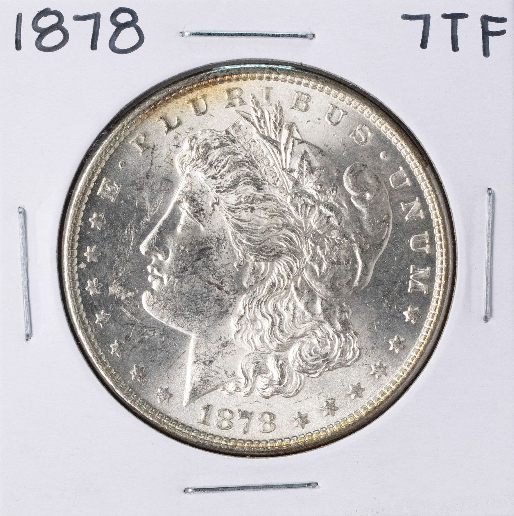 One 1878 7TF $1 Morgan Silver Dollar Coin.