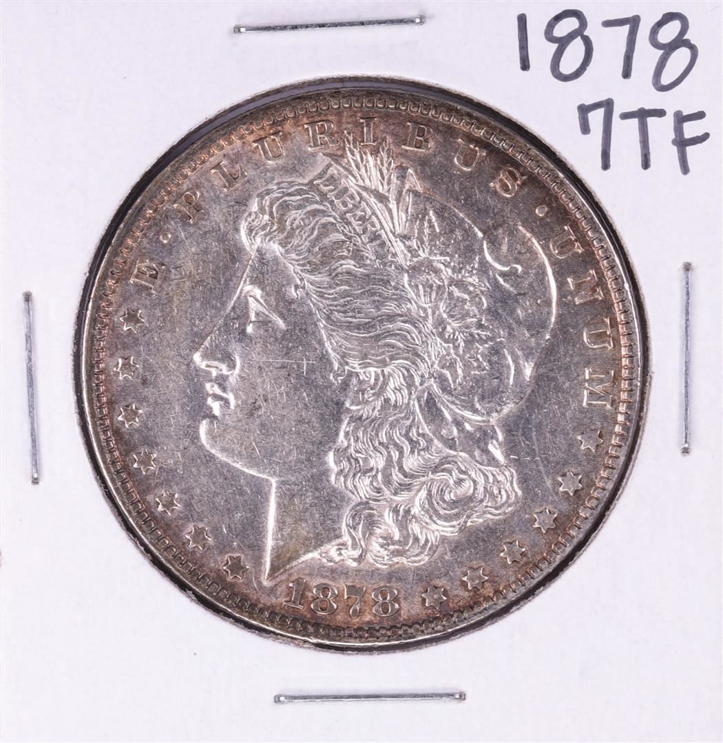 One 1878 7TF $1 Morgan Silver Dollar Coin.