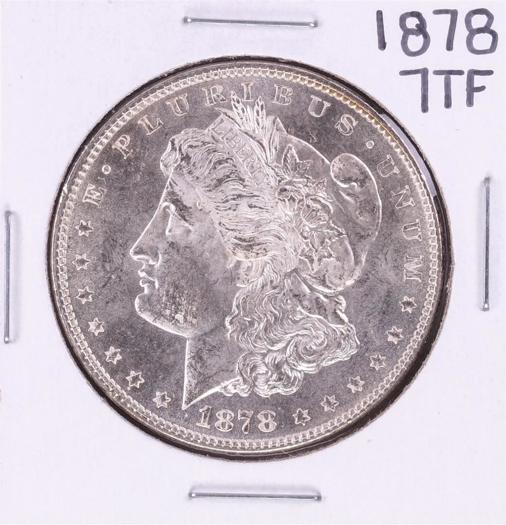 One 1878 7TF $1 Morgan Silver Dollar Coin.
