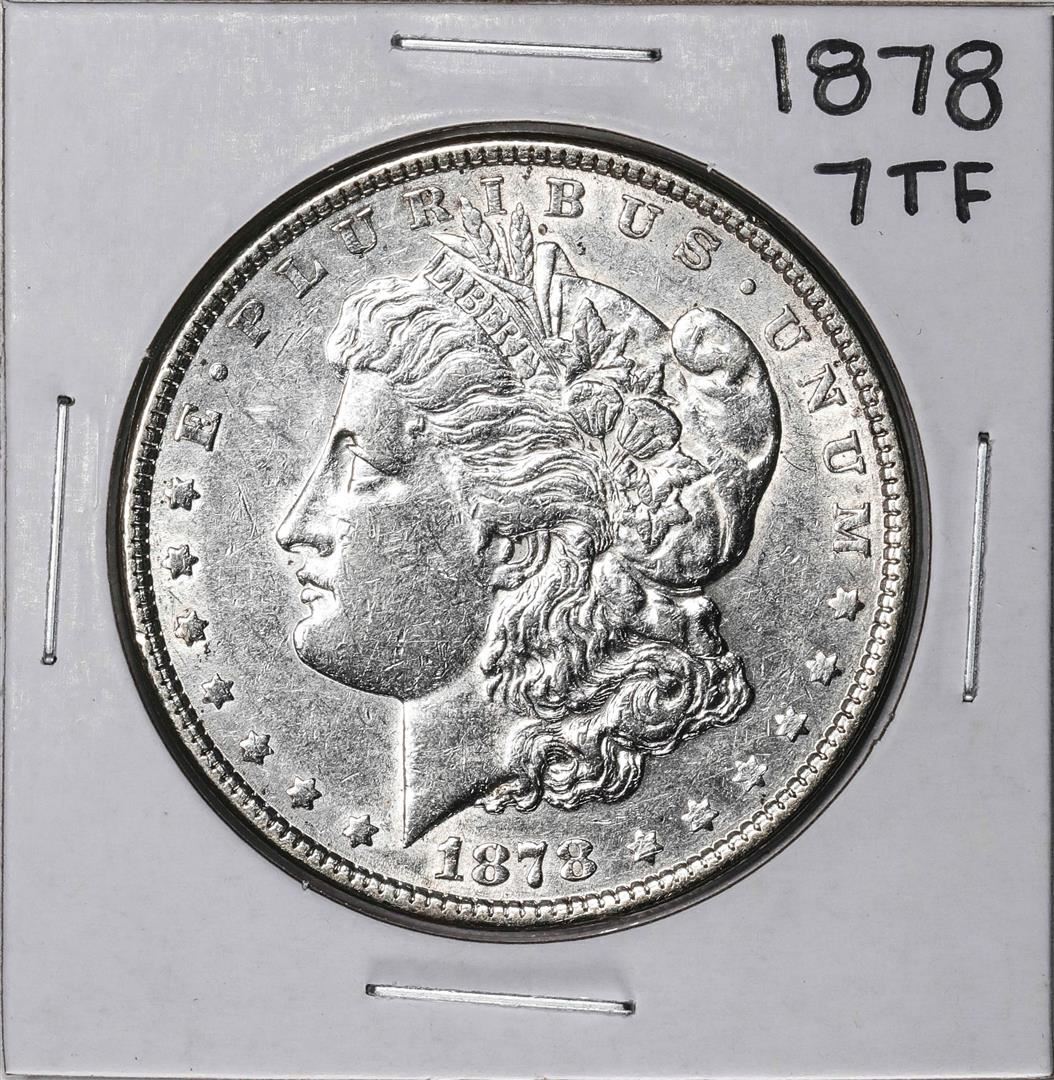 One 1878 7TF $1 Morgan Silver Dollar Coin.