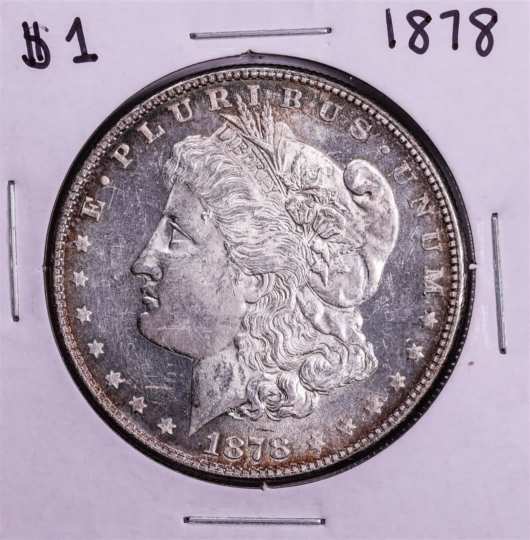 One 1878 7TF $1 Morgan Silver Dollar Coin.