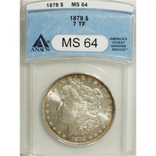 <B>1878 7TF $1 Reverse of 1878 MS64 ANACS.</B></I> NGC Census: (3003/457). PCGS Population (2007/409). Mintage: 4,900,000. Numismedia Wsl. Price for NGC/PCGS coin in MS64: $240. (#7074)<BR><BR><b>Shipping:</b> Coins & Currency (<a target="_blank" href="http://www.heritageauctions.com/common/shipping.php">view shipping information</a>)