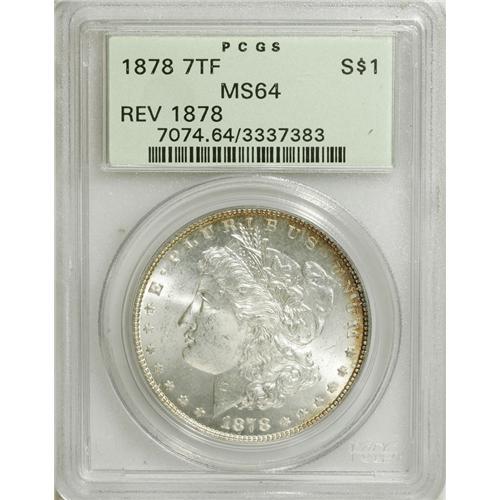 <B>1878 7TF $1 Reverse of 1878 MS64 PCGS.</B></I> PCGS Population (2009/410). NGC Census: (2994/457). Mintage: 4,900,000. Numismedia Wsl. Price for NGC/PCGS coin in MS64: $240. (#7074)<BR><BR><b>Shipping:</b> Coins & Currency (<a target="_blank" href="http://www.heritageauctions.com/common/shipping.php">view shipping information</a>)