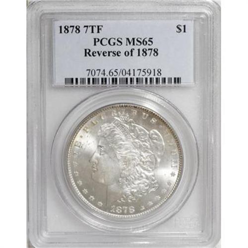 <B>1878 7TF $1 Reverse of 1878 MS65 PCGS.</B></I> Golden-gray patina is slightly more prevalent on the reverse margins, and a solid strike sharpens the design features, including the hair at Liberty's ear. Lustrous surfaces reveal just a few light marks within the parameters of the grade designation.<BR><I>From The Silver Spur Collection of Morgan Dollars.</B></I><BR><BR><B>Coin Engraver:</B> George T. Morgan<BR><BR><b>Shipping:</b> Coins & Currency (<a target="_blank" href="http://www.heritageauctions.com/common/shipping.php">view shipping information</a>)