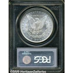 <B>1878 7TF<img border='0' src='http://www.heritagecoins.com/images/star.gif' width=10 height=10>$1 Reverse of 1879 MS64 PCGS.</B></I> Silver-gray surfaces display sharply struck devices, and a few minor marks on Liberty's nose and cheek.