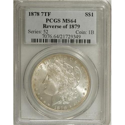 <B>1878 7TF $1 Reverse of 1879 MS64 PCGS.</B></I> PCGS Population (1020/278). NGC Census: (950/135). Mintage: 4,300,000. Numismedia Wsl. Price for NGC/PCGS coin in MS64: $500. (#7076)<BR><BR><B>Coin Engraver:</B> George T. Morgan<BR><BR><b>Shipping:</b> Coins & Currency (<a target="_blank" href="http://www.heritageauctions.com/common/shipping.php">view shipping information</a>)