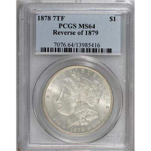 <B>1878 7TF $1 Reverse of 1879 MS64 PCGS.</B></I> PCGS Population (1028/279). NGC Census: (950/135). Mintage: 4,300,000. Numismedia Wsl. Price for NGC/PCGS coin in MS64: $500. (#7076)<BR><BR><B>Coin Engraver:</B> George T. Morgan<BR><BR><b>Shipping:</b> Coins & Currency (<a target="_blank" href="http://www.heritageauctions.com/common/shipping.php">view shipping information</a>)
