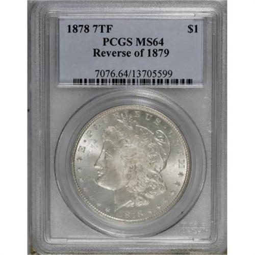 <B>1878 7TF $1 Reverse of 1879 MS64 PCGS.</B></I> . PCGS Population (1055/286). NGC Census: (967/135). Mintage: 4,300,000. Numismedia Wsl. Price for NGC/PCGS coin in MS64: $500. (#7076)<BR><BR><B>Coin Engraver:</B> George T. Morgan<BR><BR><b>Shipping:</b> Coins & Currency (<a target="_blank" href="http://www.heritageauctions.com/common/shipping.php">view shipping information</a>)