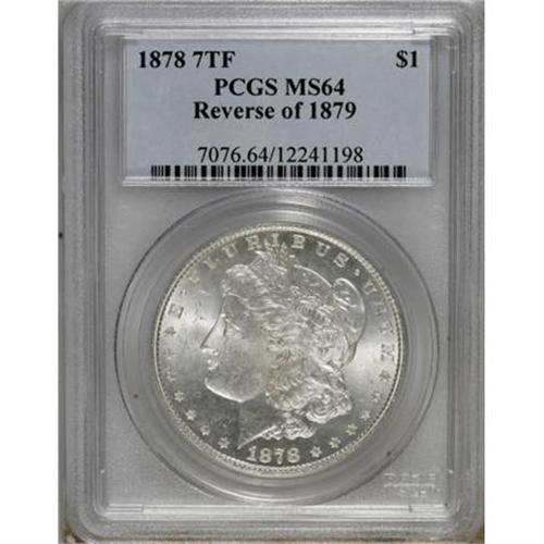 <B>1878 7TF $1 Reverse of 1879 MS64 PCGS.</B></I> PCGS Population (1063/289). NGC Census: (964/135). Mintage: 4,300,000. Numismedia Wsl. Price for NGC/PCGS coin in MS64: $500. (#7076)<BR><BR><B>Coin Engraver:</B> George T. Morgan<BR><BR><b>Shipping:</b> Coins & Currency (<a target="_blank" href="http://www.heritageauctions.com/common/shipping.php">view shipping information</a>)