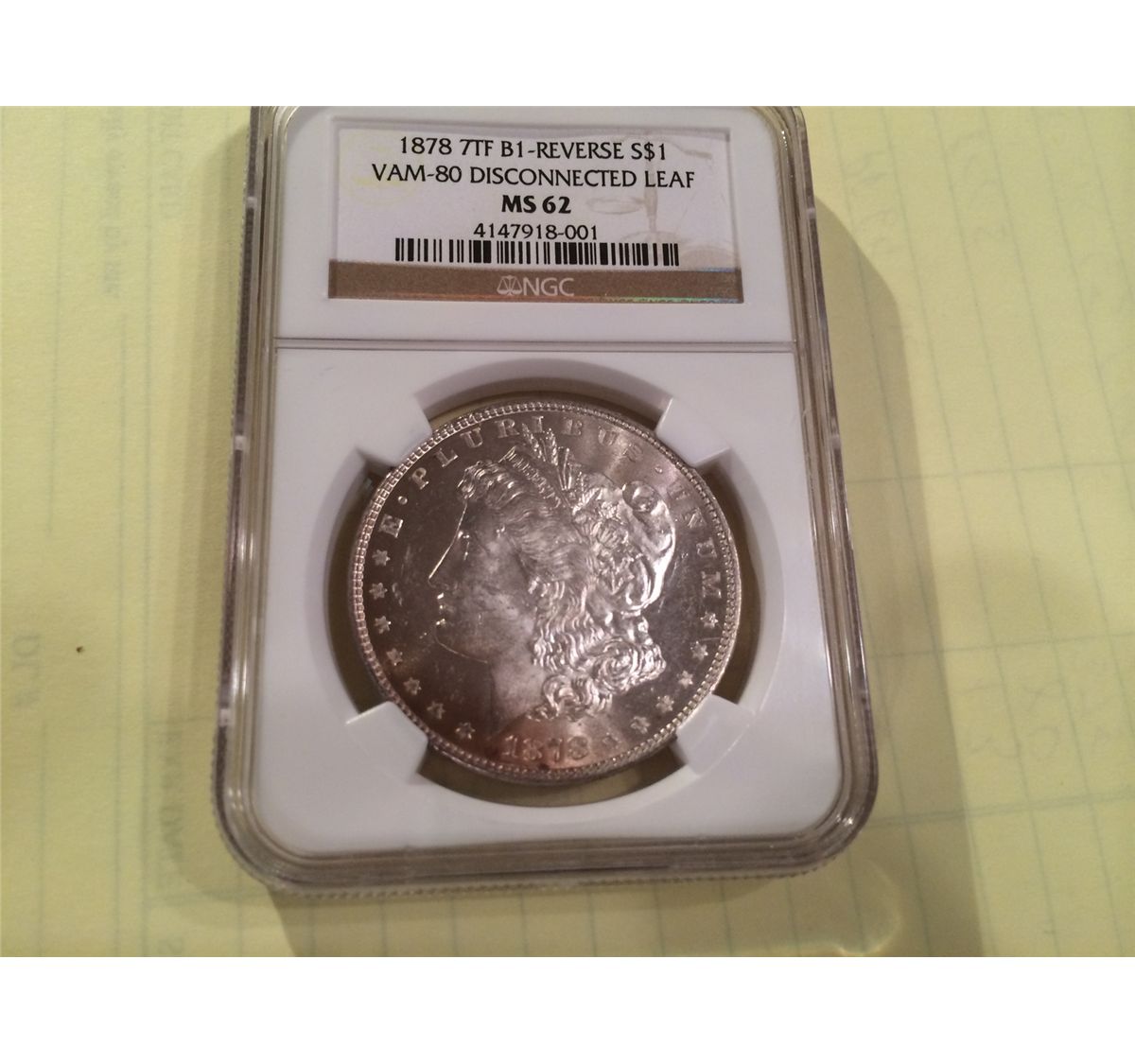 1878 7TF B1-REVERSE MORGAN DOLLAR NGC MS-62 VAM 80 DISCONNECTED LEAF