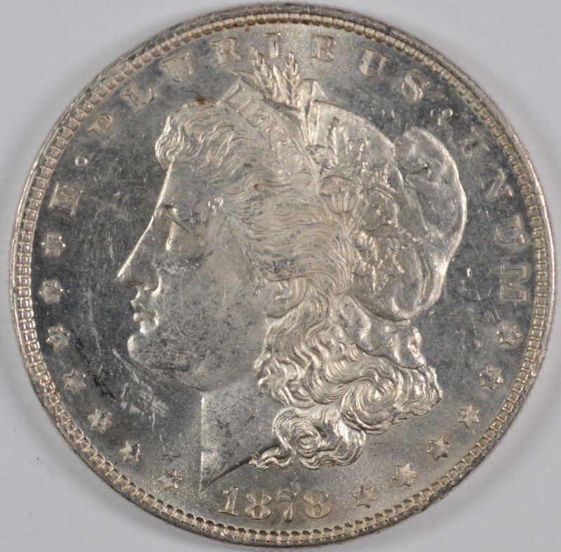 1878 7TF MORGAN SILVER DOLLAR, MS-63 FULLY PL AND ORIGINAL!