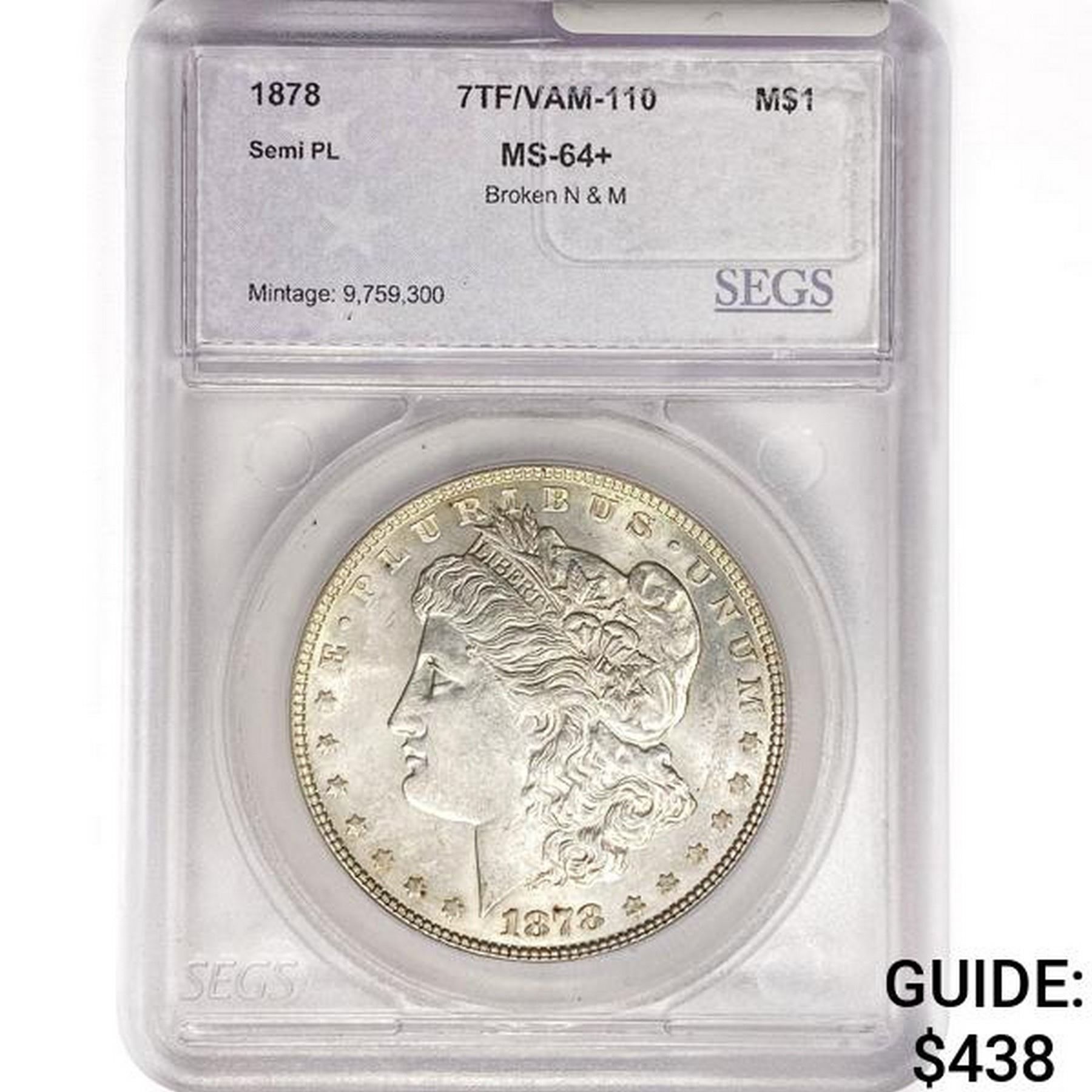 1878 7TF Morgan SILV $1 SEGS MS64+ VAM-110 Semi PL