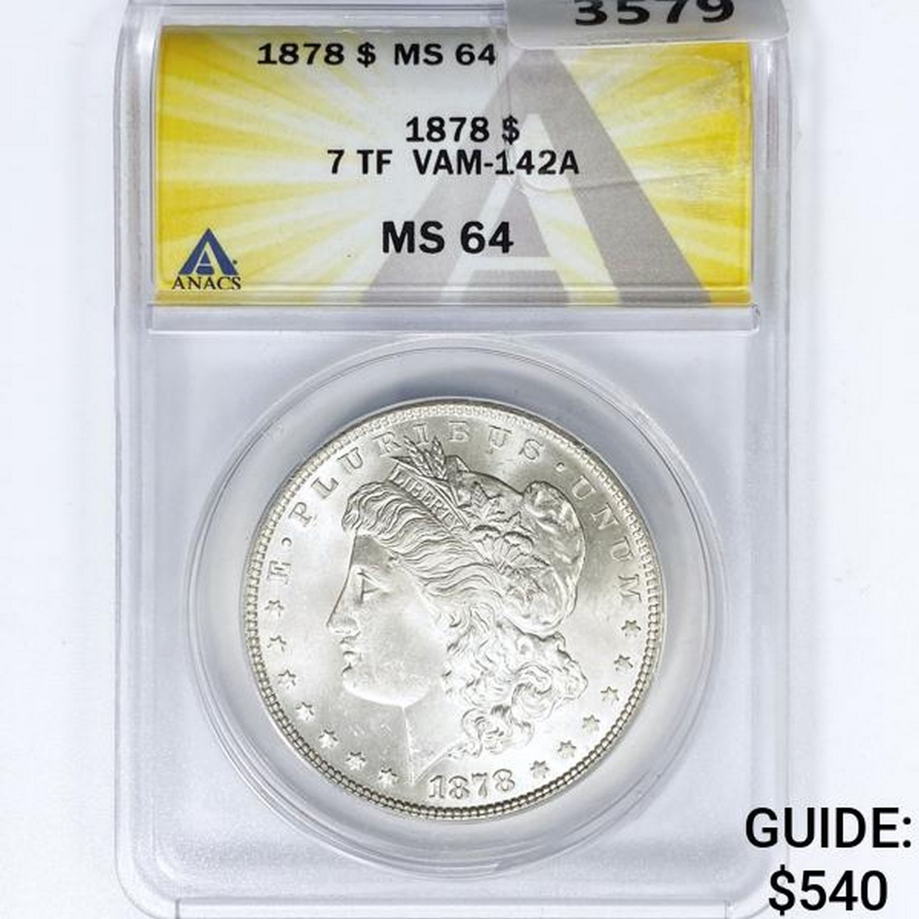 1878 7TF Morgan Silver Dollar ANACS MS64 VAM-142A