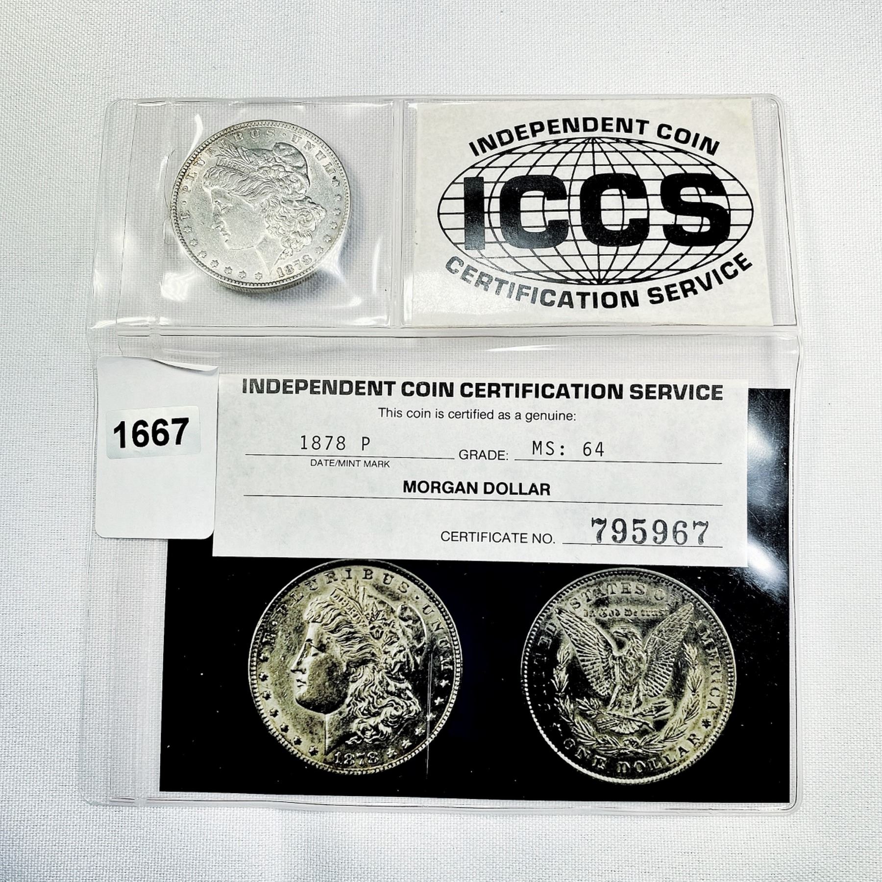 1878 7TF Morgan Silver Dollar ICCS-MS69 w/ Cert.
