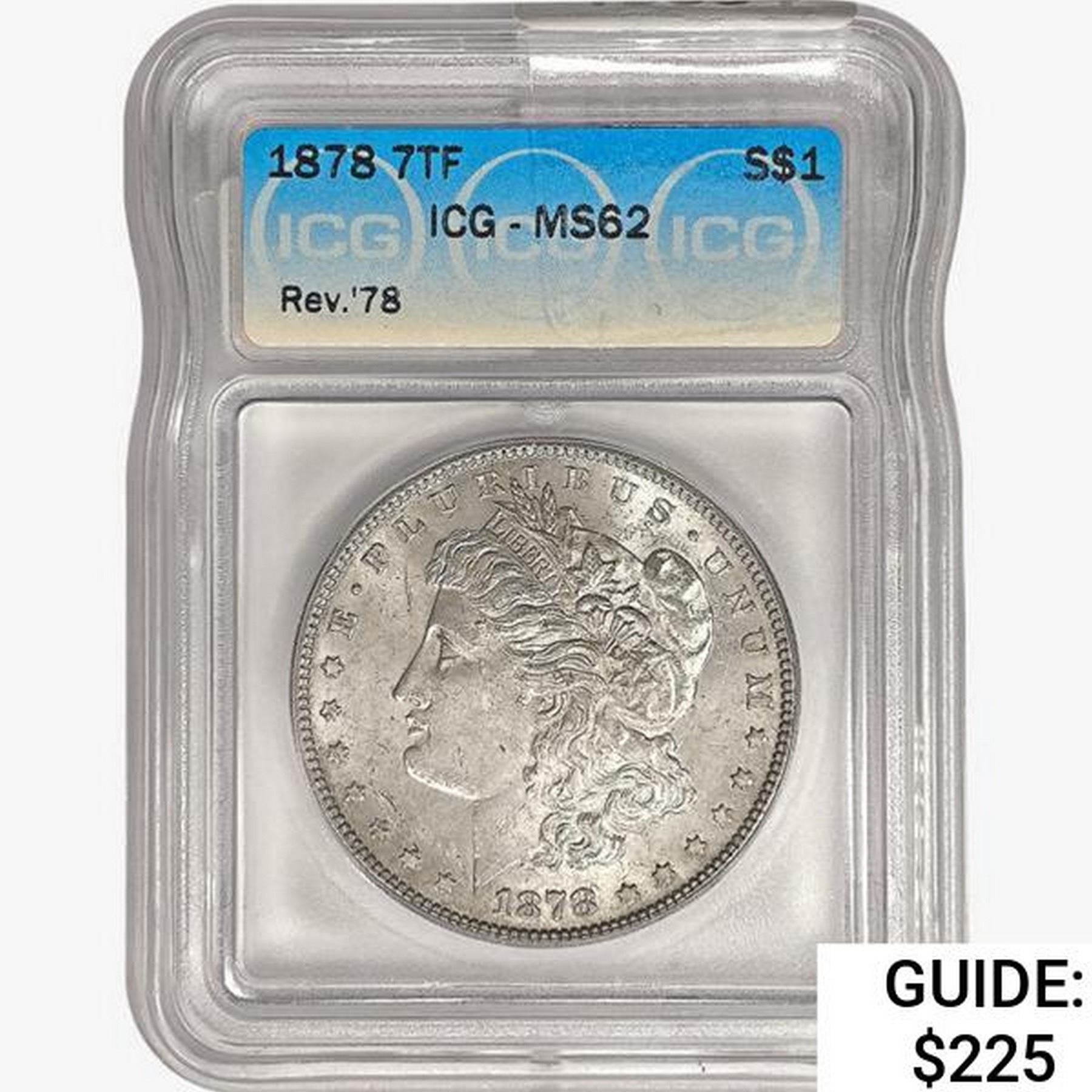 1878 7TF Morgan Silver Dollar ICG MS62 REV 78