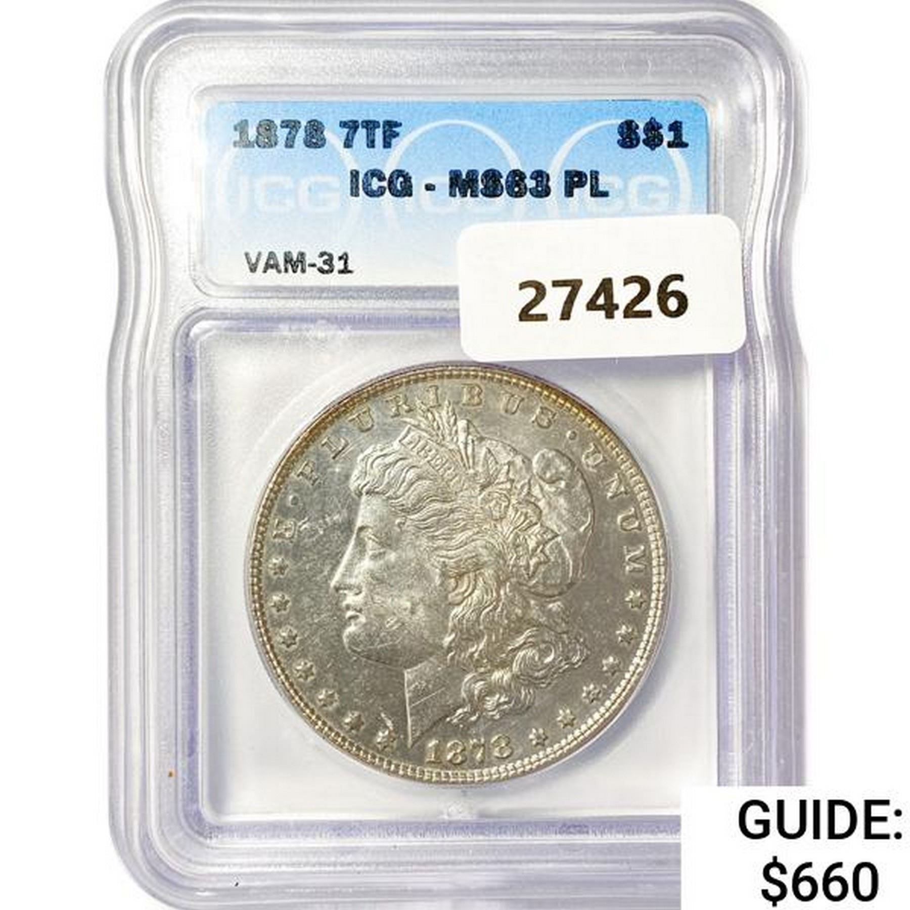 1878 7TF Morgan Silver Dollar ICG MS63 PL, VAM-31