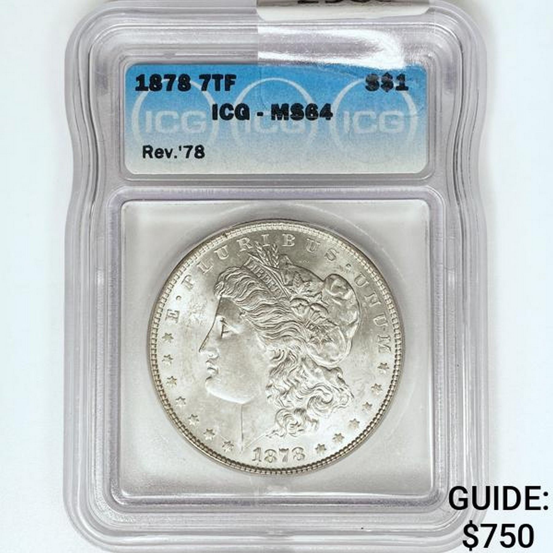 1878 7TF Morgan Silver Dollar ICG MS64
