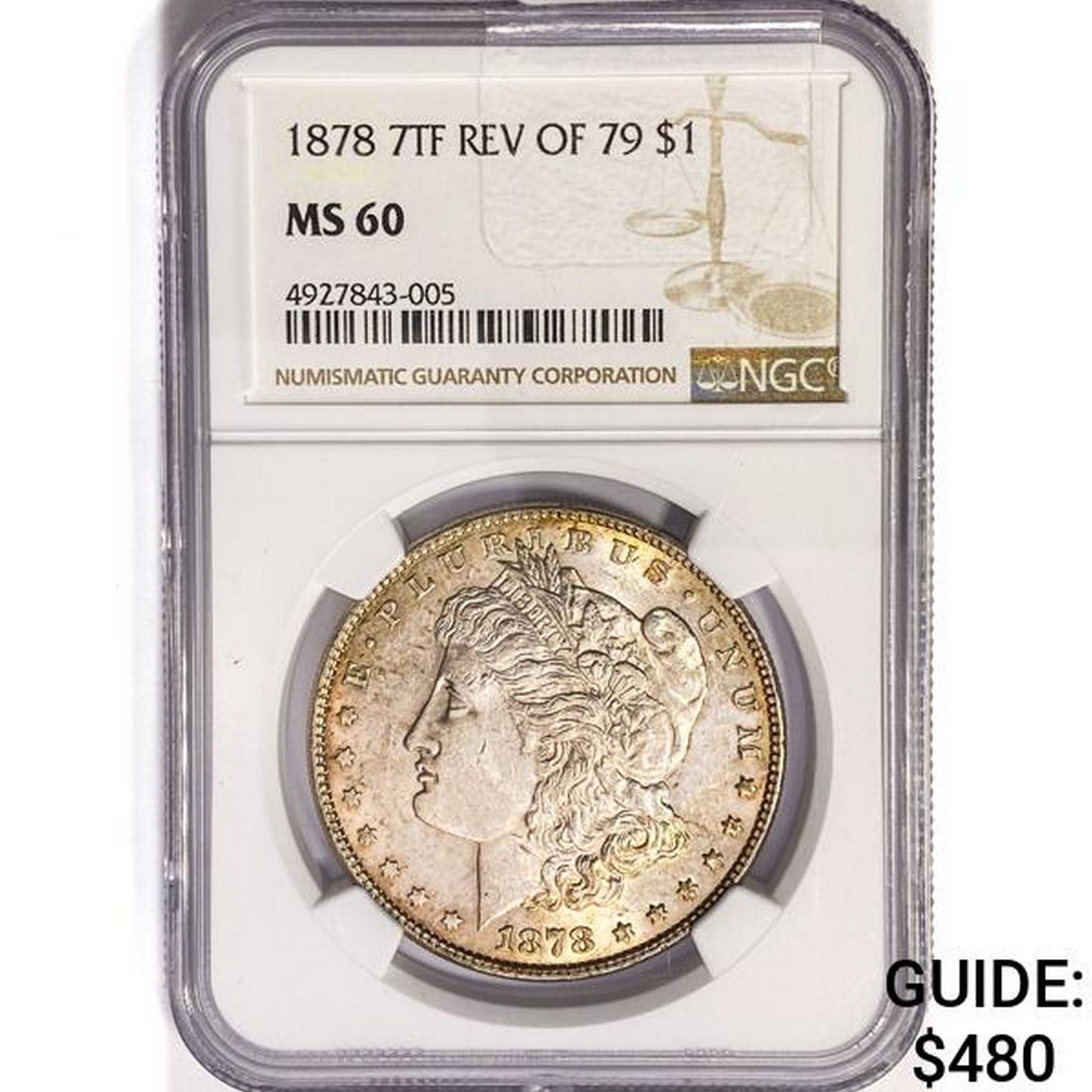 1878 7TF Morgan Silver Dollar NGC MS60 REV 79