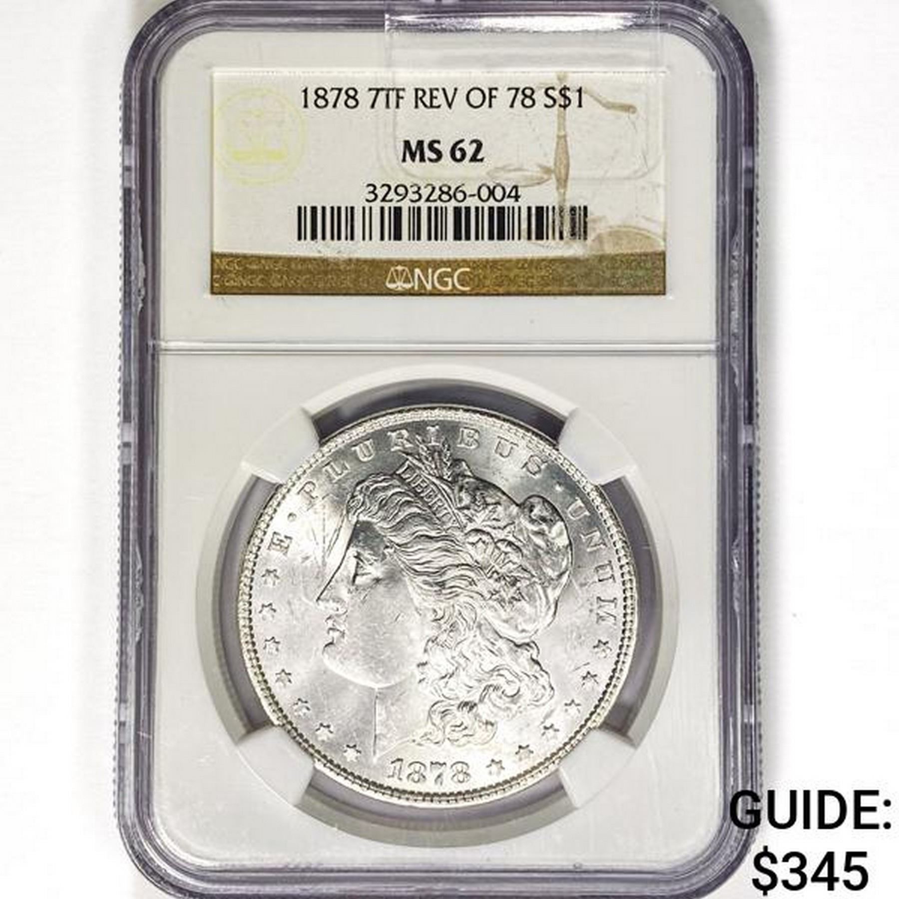 1878 7TF Morgan Silver Dollar NGC MS62 REV 78