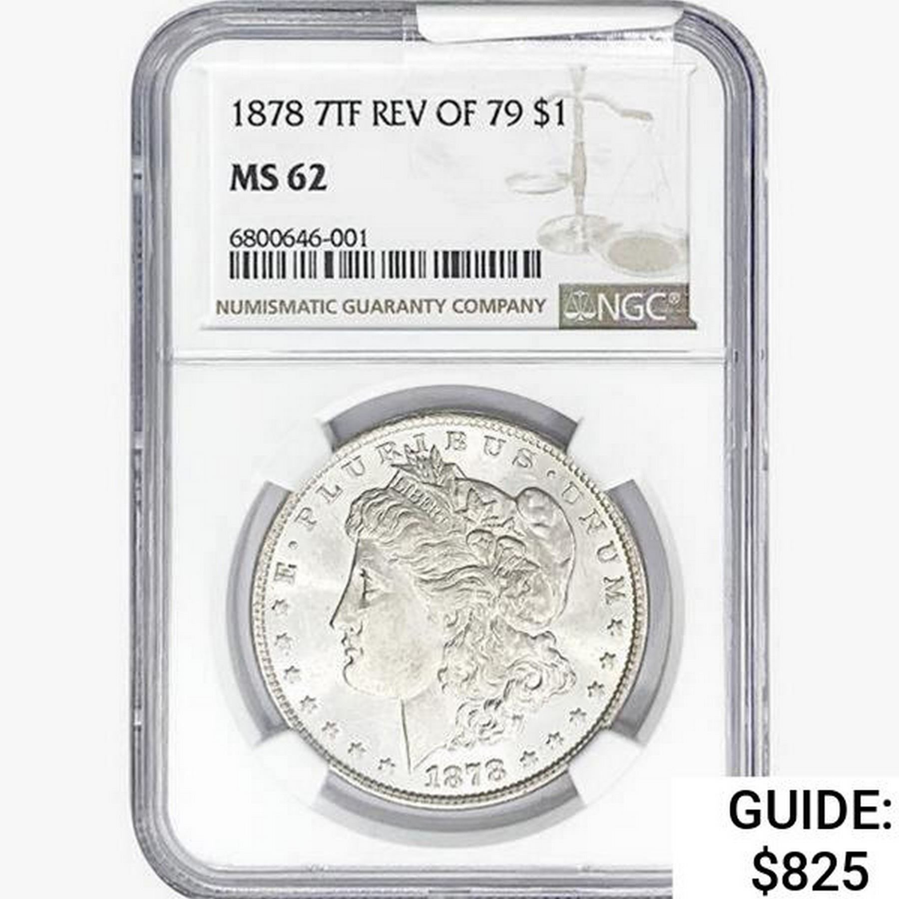1878 7TF Morgan Silver Dollar NGC MS62 REV 79