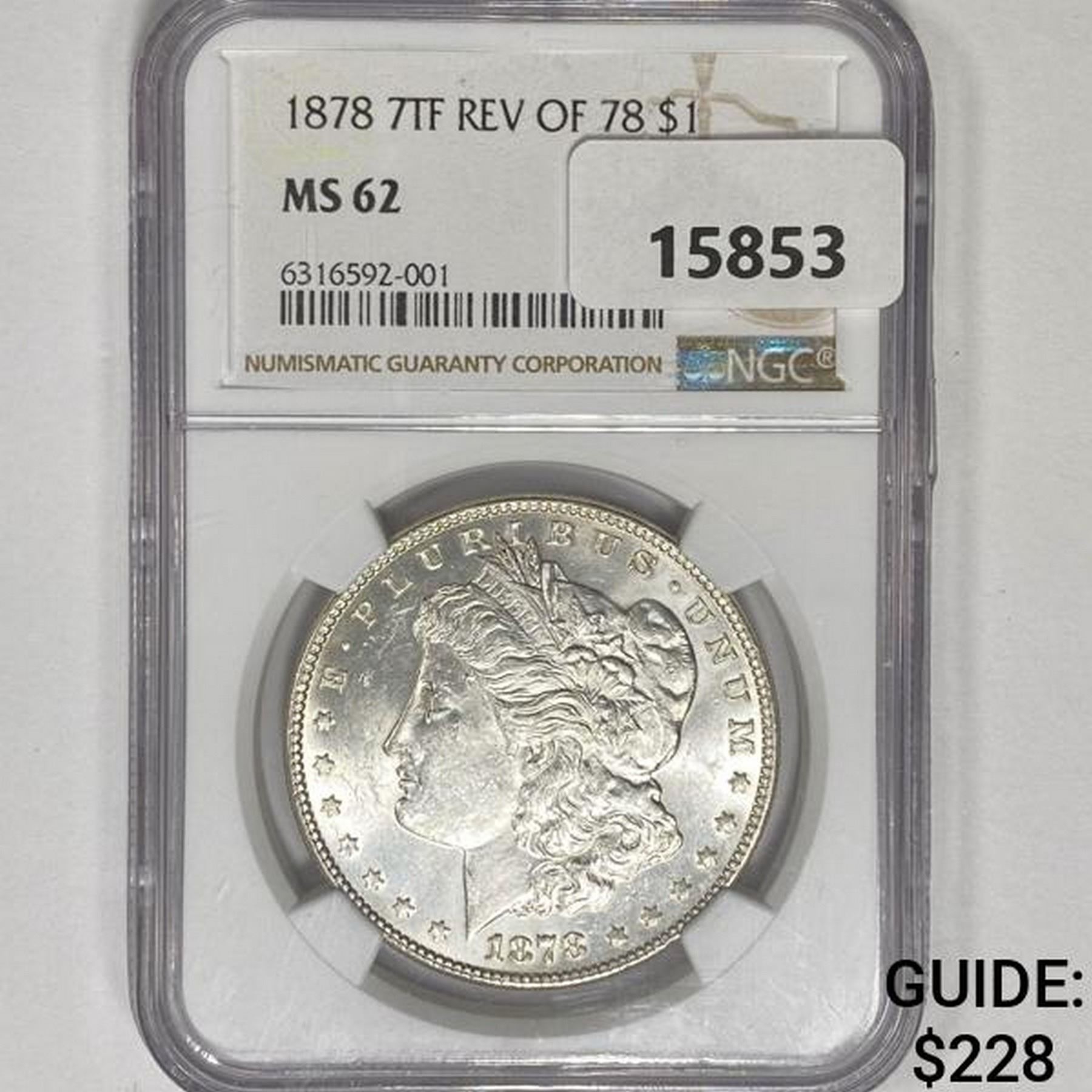 1878 7TF Morgan Silver Dollar NGC MS62 Rev of 78
