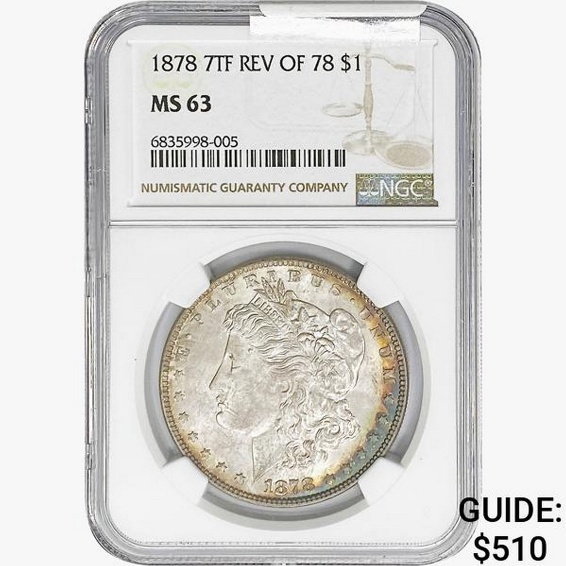 1878 7TF Morgan Silver Dollar NGC MS63 REV 78