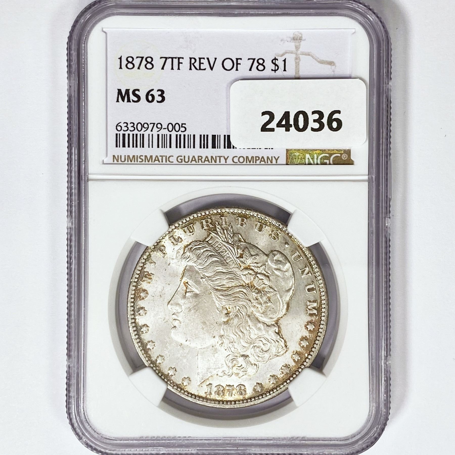 1878 7TF Morgan Silver Dollar NGC MS63 Rev 78