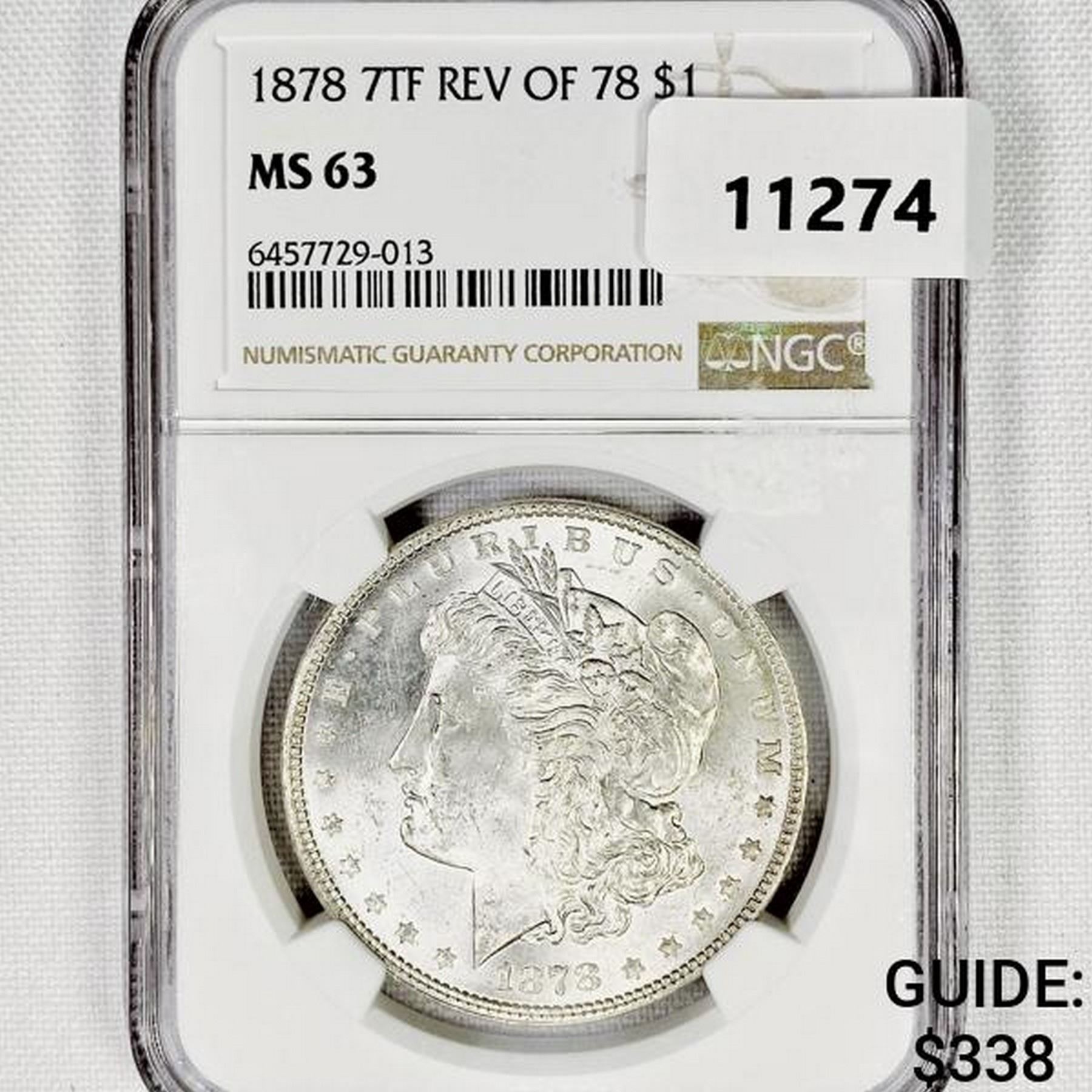1878 7TF Morgan Silver Dollar NGC-MS63 Rev of 78