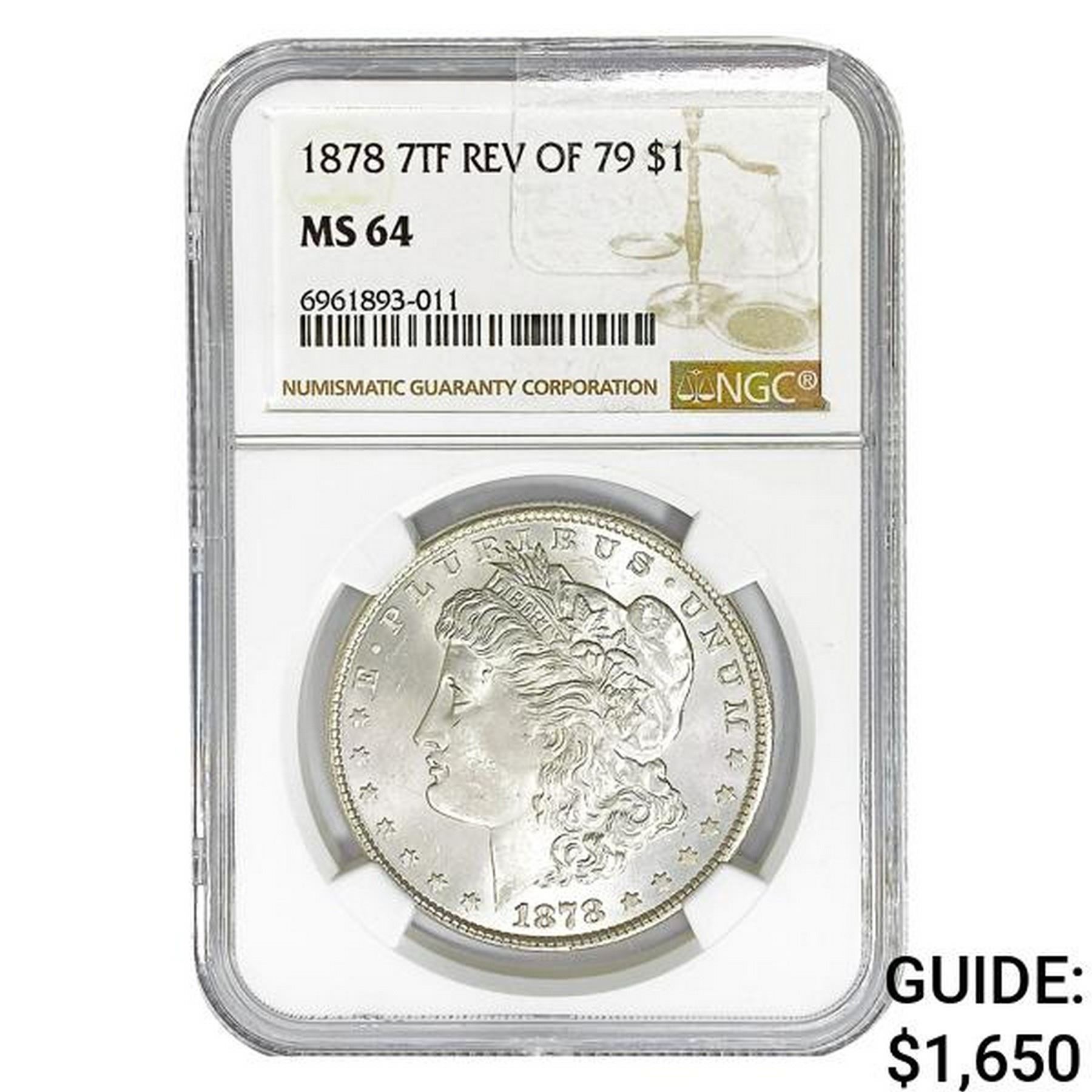 1878 7TF Morgan Silver Dollar NGC MS64 REV 79
