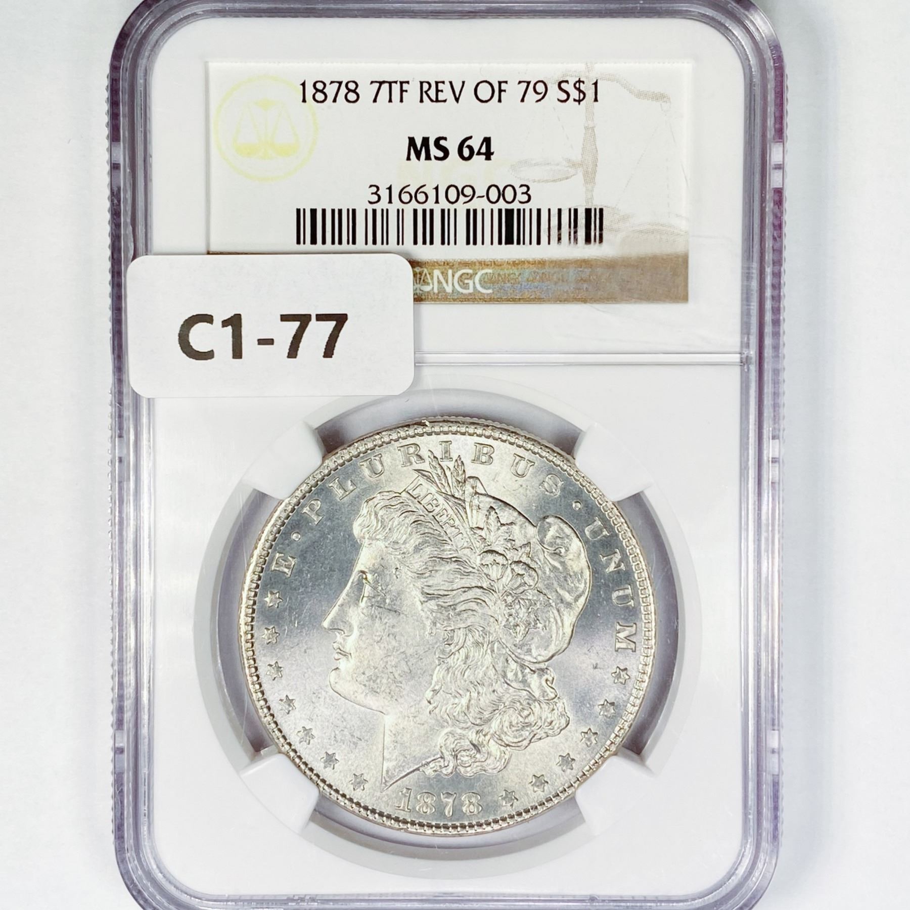 1878 7TF Morgan Silver Dollar NGC MS64 Rev 79